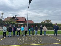 Heute versuchten sich Schülerinnen und Schüler unserer Schule in einer anderen Sportart: dem Stockschießen. Statt Bücher und Stifte standen diesmal Stöcke und Zielscheiben im Fokus: Die Klassen 1a und 2b lernten Stockschießen, eine Sportart, die Geschicklichkeit, Teamgeist und eine ruhige Hand erfordert.